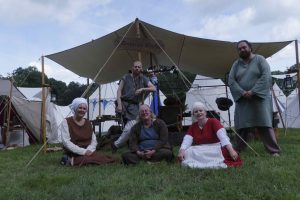 Samen zijn wij, de Midlanders, een echtpaar uit de periode rond 1470. Wij komen met een grote tarp, waaronder we leven. We koken soms op open vuur en volgens middeleeuws gebruik. De meubels die we hebben, zijn zelf gemaakt of aangepast aan het tijdsbeeld. Onze kleding is zelfgemaakt naar middeleeuws voorbeeld. We kunnen en willen u daar alles over vertellen. We laten u naaldbinden zien. Leggen u dat uit en tonen u onze wollen producten. We hebben een harnas, zwaarden en bogen en kunnen u daar van alles over vertellen. De boogschutter doet mee aan veldslagen en de ‘bange’ ridder laat kinderen zien dat bang zijn voor kanonnen en vechten ook stoer kan zijn.