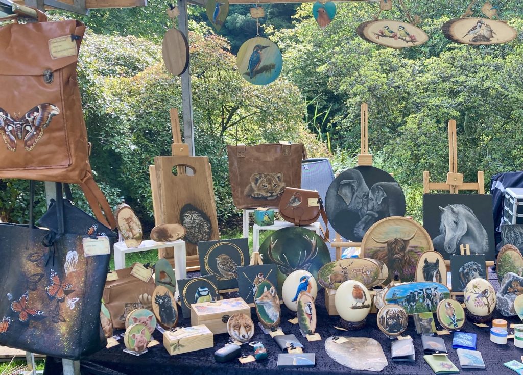Het is ook mogelijk een handbeschilderde zijden sjaal, leren tas of een mooi dierenportret op maat te bestellen.”