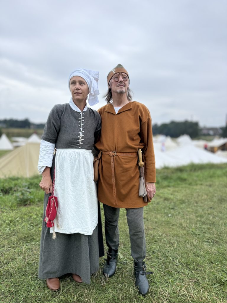 “Samen zijn wij, de Midlanders, een echtpaar uit de periode rond 1470. Wij komen met een grote tarp, waaronder we leven. We koken soms op open vuur en volgens middeleeuws gebruik. De meubels die we hebben, zijn zelf gemaakt of aangepast aan het tijdsbeeld. Onze kleding is zelfgemaakt naar middeleeuws voorbeeld. We kunnen en willen u daar alles over vertellen. We laten u naaldbinden zien. Leggen u dat uit en tonen u onze wollen producten. We hebben een harnas, zwaarden en bogen en kunnen u daar van alles over vertellen. De boogschutter doet mee aan veldslagen en de ‘bange’ ridder laat kinderen zien dat bang zijn voor kanonnen en vechten ook stoer kan zijn.”